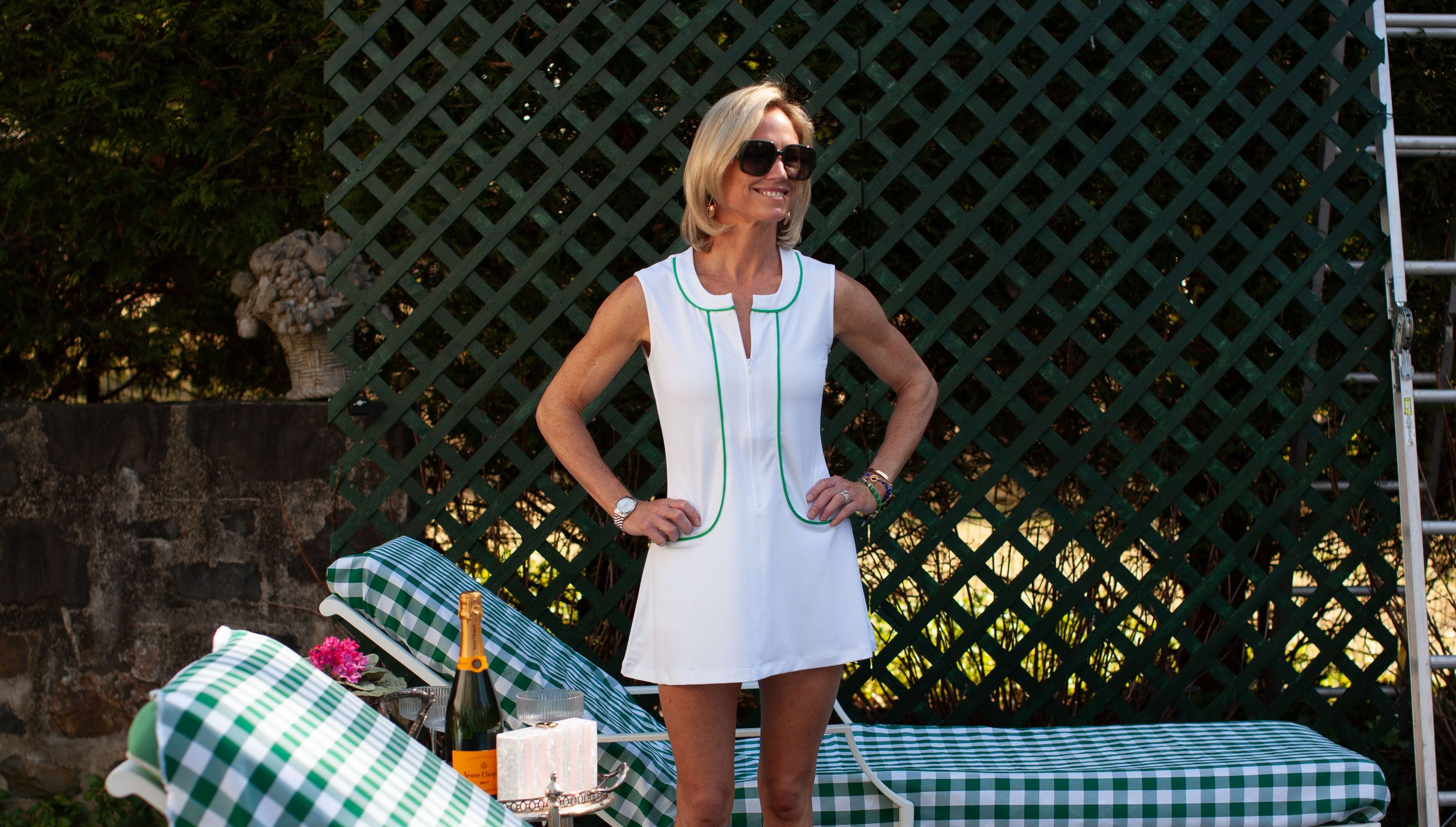 As the founders of club & court, we are busy balancing work, family, and time for exercise and socializing‚ and the tennis court is our happy place. We spent nearly a year creating modern tennis attire, with classic, beautiful lines and embellishments, but that also moves gracefully from one activity to the next‚ a dress that we could wear from the court to a meeting, school activity, or to the market. While the inspiration sprung from vintage tennis fashion, it evolved to modern fabrics and silhouettes, soft palettes, and bold prints.