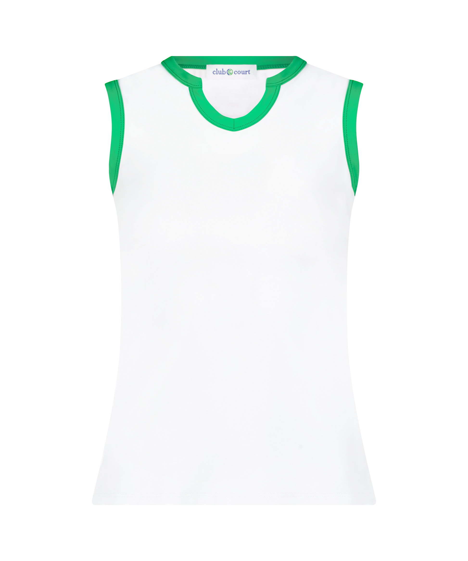 The Stacy Tank is a sleeveless evolution of our best-selling Stacy Tee and a signature Club & Court essential, designed with a pretty, feminine silhouette, scalloped neckline, and refined, club-approved trim. Crafted in Portugal from our signature Premier Span™ performance fabric, it offers smooth structure, comfortable stretch, and polished ease on and off the court. Designed for a slim fit; size up for a looser feel.